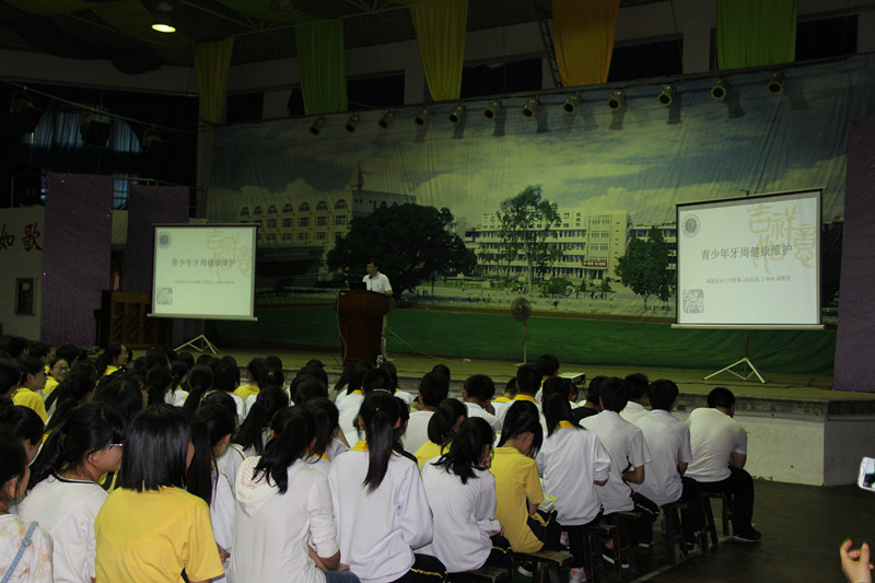 2015年5月18日,预防科丁林灿副主任医师率连江门诊部医护人员赴连江县第一中学开展主题为“青少年牙周健康维护”口腔保健讲座。 丁主任针对青少年口腔保健的特点,对口腔