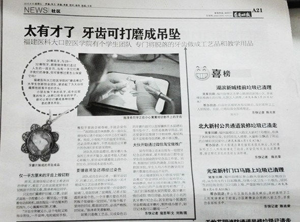 2015/04/073月20日是世界口腔健康日,为广泛宣传口腔保健知识、提高群众口腔保健意识、扩大我院的公众影响力,我院常务副院长程辉教授接受了福州晚报记者的采访,针对口腔修复知识作了