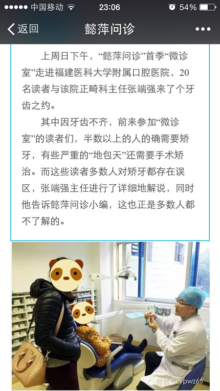 2015年3月8日下午,我院正畸科张端强主任应《东南快报》“懿萍问诊”栏目邀请坐诊“微诊室”,免费发放了25个号源给读者,让读者可以面对面与张主任交流牙齿正畸方面的问题