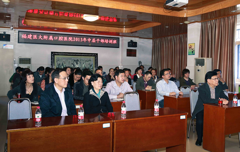 11月25日,我院2013年中层干部管理培训班在七楼会议室如期举办。院领导班子及中层干部近50人参加了此次培训。 培训班特邀中华口腔医学会副会长、武汉大学医学院院长