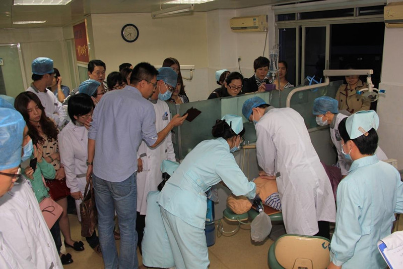 按照医院的统一安排与部署,2013年10月31日下午,修复科和特诊科联合急救演练在修复科第三诊室进行。院医务科张志兴科长、急诊科钟萍萍副主任、护理部陈昕波副护士长全程观