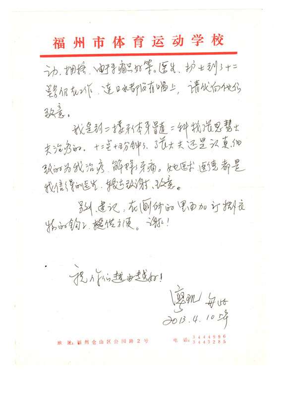 4月10日,患者廖玑寄来感谢信到院办,对我院放射科和牙体牙髓二科提供的优质服务表示感谢,特别感谢了牙体二科的张思慧医师,并对我院的服务提出了合理化的建议。请各科室医护人员认真向上述科室和人员学习,向患者提供更让人满意的医疗服务。