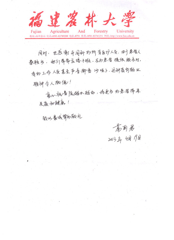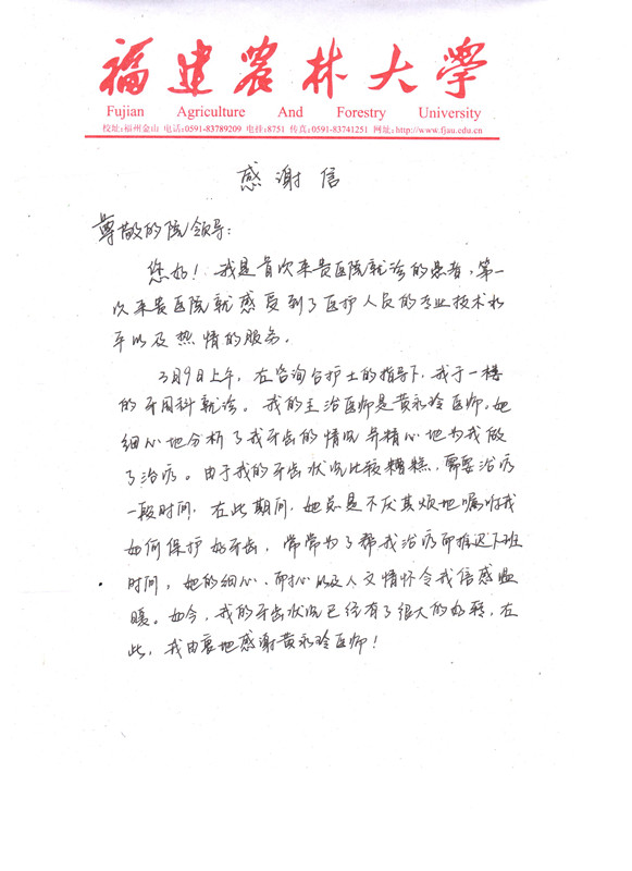 4月22日,院办公室收到患者葛某某的感谢信,表扬牙周科全体医护人员和黄永玲医师。现将感谢信全文公布如下,请全院职工阅读学习。