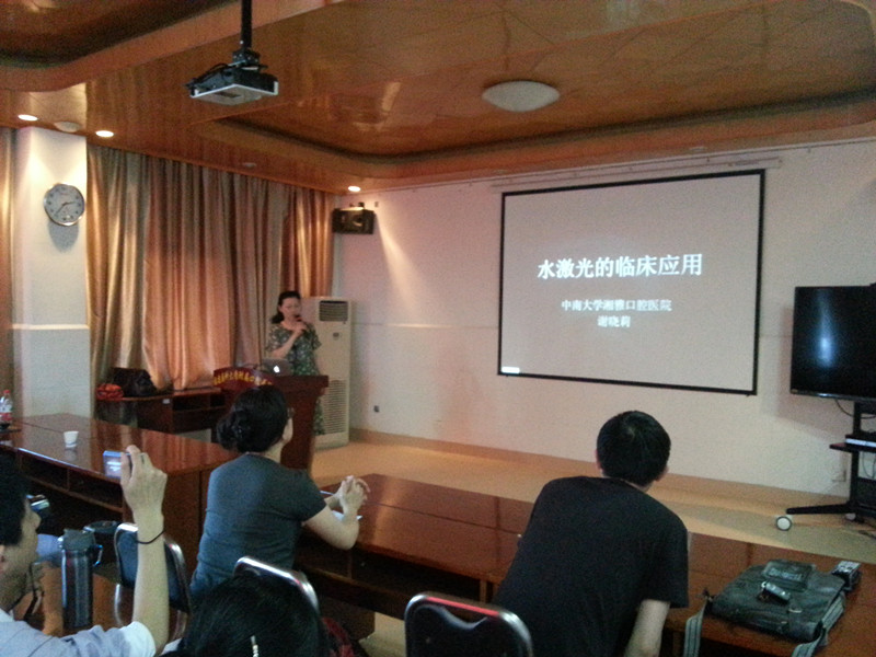 5月22日下午,我院牙周科和皓浦医疗有限公司联合邀请中南大学湘雅口腔医院谢晓莉教授到我院举办了“水激光的临床应用”的讲座。谢晓莉教授是中南大学湘雅口腔医院副院长,博士,主任医师,硕士生导师。她在讲座中对水激光的原理和临床应用进行了讲解,并带来临床病例和经验与学员们交流、分享。讲座结束后,谢教授还演示了用水激光进行牙龈瘤切除术,进一步加深了大家对水激光临床应用的认识。 (牙周科江俊供稿)