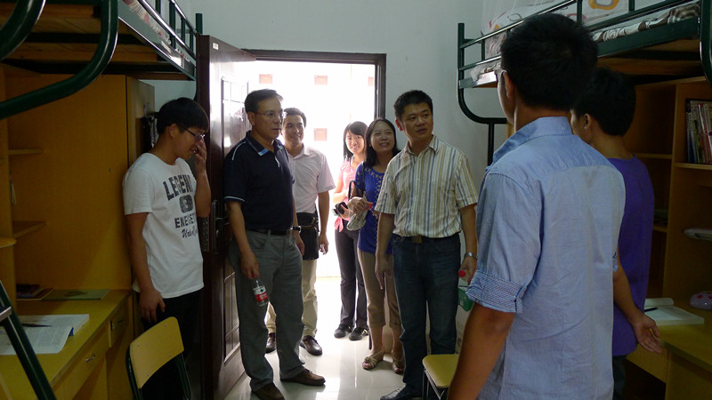 9月5日下午,院领导卢友光书记、程辉常务副院长、黄晓晶副书记专程到上街校区学生公寓,在学院辅导员老师等的陪同下亲切看望了我院2013级本科新生。院领导走访了我院所有24间新生宿舍,与新同学亲切交谈,关心同学们的安全、学习、居住环境、生活适应等情况,受到了同学们的热烈欢迎。 (口腔医学院薛来兴)