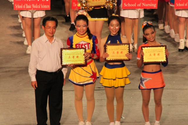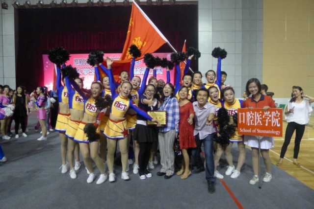 比赛在动感的乐曲、炫目的装扮、灵动的舞姿、跳跃的节奏中进行。我院代表队怀着满腔的热情,踏着动感的节拍,秉承“至精至微,厚德载物”的院训精神,在舞台上尽情地、完美地绽放着口腔人的青春风采,赢得了台下观众的阵阵喝彩。“激情飞扬,魅力无双,爱我医大,圆梦口腔”的口号在体育馆上空久久回荡,这不仅是对参赛同学的肯定和鼓励,也是对青春医大、魅力口腔的深情厚爱。