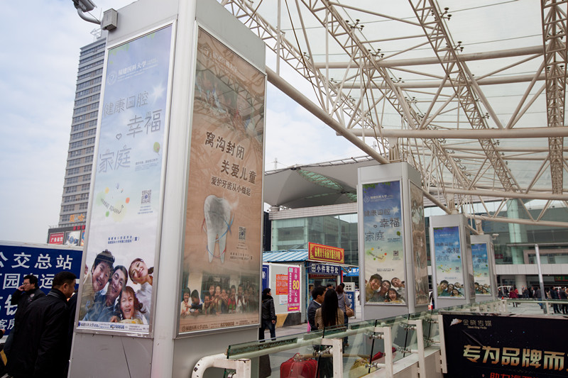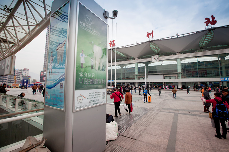 是的,目前社会大众的口腔保健意识仍然普遍薄弱,为了宣传口腔保健知识,提高群众的口腔保健意识,福建医科大学附属口腔医院斥资在福州火车北站站前广场的8根立柱设立公益灯箱广告,进行为期一年的发布。日前,第一批的宣传海报已设计完成并已成功投放,内容涉及12320就诊预约平台、牙周、种植、修复、儿童牙科等多方面的小常识。