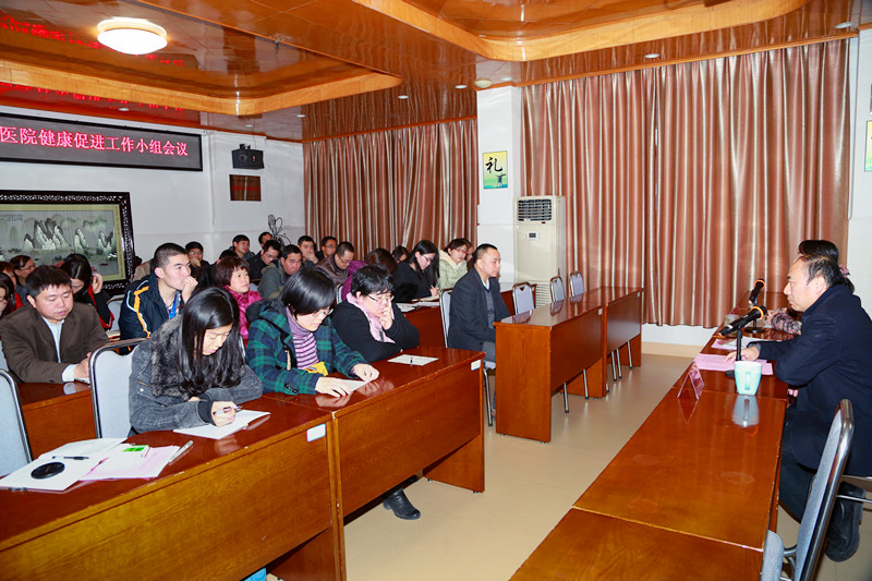 会上,黄晓晶副书记首先布置了2014年我院健康促进工作的具体任务,要求各科室召开全员动员会议,传达会议精神、根据要求布置具体任务;同时调查全院职工的健康状况,以便制定针对性健康促进计划;上交与科室诊疗内容相关的科普文章、建立控烟巡查制度等。随后,陈江院长对全体工作小组成员提出四点要求:一要端正态度,把健康促进工作作为科室工作的重要内容;二要转变观念,作为一名医生,除了注重临床技能的提高之外,本身还担负着疾病预防及健康教育的使命;三要高度重视,从提高个人自身素质开始,达到最终提高全社会的健康素养的目的;四要创新开拓,健康促进工作对大家来说是一项新颖、有趣又有意义的工作,希望大家开动脑筋、拓展思路、不断创新,拿出一些新颖的思路。陈院长最后指出,健康促进工作做得好,也是推动医院发展的强大动力,希望大家同心协力,认真把此项工作做好。