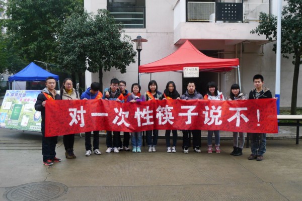 1.“绿色环保,筷筷行动”——花开大自然。3月12日,院青年志愿者协会以植树节为契机,改变了传统植树的形式,举办了以“筷筷行动,还世界一抹绿”为主题,拒绝使用一次性筷子的活动。共设置了“对一次性筷子说不”的横幅签名的形式、答题送不锈钢筷子环节,通过宣传环保从自我做起,从身边做起的理念,得到了很好的反响。