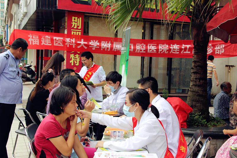 2014年6月7日,连江门诊部的医护人员与福建医科大学研究生院的青年志愿者们一同来到连江县龙华花园小区进行义诊,以普及居民口腔卫生保健知识,提高人们预防口腔疾病的意识和能力。
