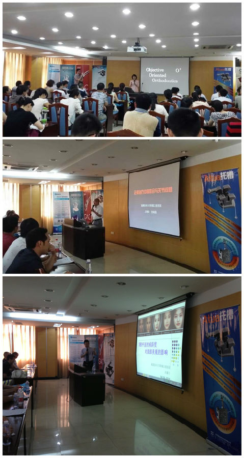 张端强教授主持了开幕式,并做了题为“正畸治疗中的咬合及关节问题”的演讲。随后许潾于副教授也做了题为“牙合平面倾斜度对面部美观的影响”的演讲。