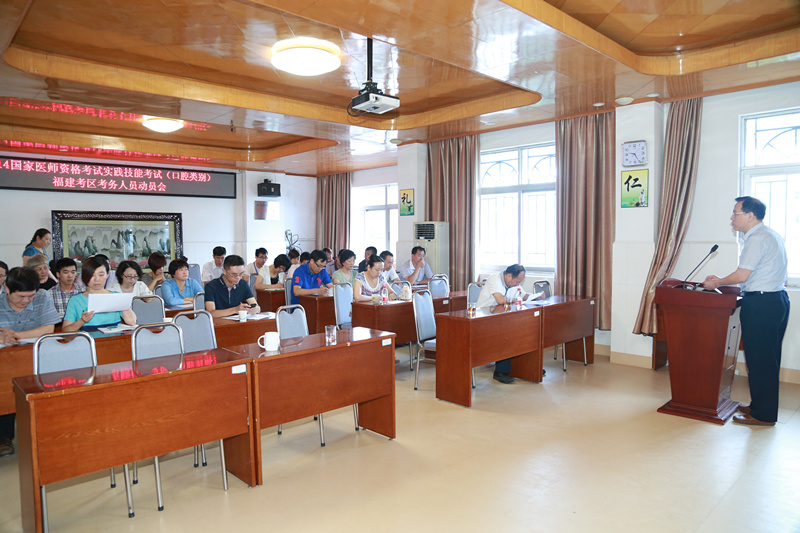 考官遴选结束后,程辉常务副院长主持召开了2014年国家医师资格考试实践技能考试(口腔类别)福建考区考务人员动员会。动员会上,程辉常务副院长对今年的考务工进行了具体的安排与分工,要求所有考务人员提前准备、各司其职、及时沟通,同时注意做好保密工作。