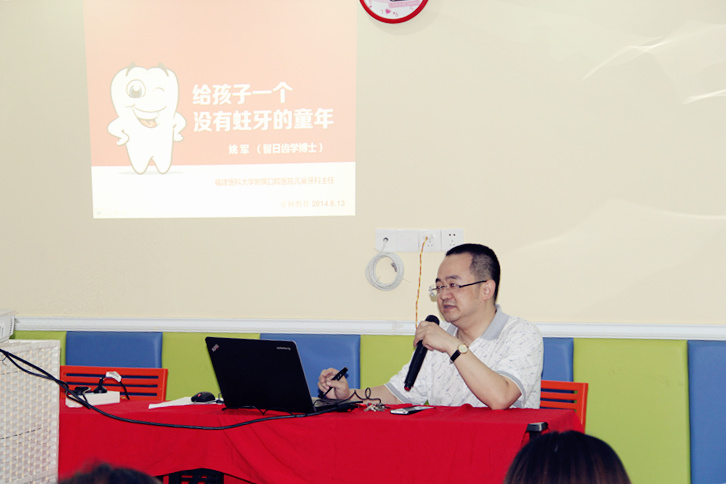 6月28日晚,儿童牙科姚军主任来到位于大儒世家附近的“华夏爱婴早教中心”,对中心的家长及小朋友们进行了一次爱牙知识科普讲座。家长们坐在小板凳上边听边认真做着笔记,讲座结束后积极与姚军主任探讨婴幼儿的护牙知识。现场反响热烈,家长们通过这次宣讲对宝宝的牙齿健康有了新的认识,纷纷建议应该多多开展类似的科普讲座。(儿童牙科 黄月英供稿)