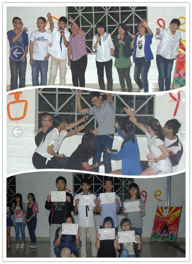 活动通过新老生宿舍联谊表演的形式进行,比赛精彩纷呈,有学姐学弟们“深情对唱”的抒情慢歌,有学长学妹们搞怪演绎“小苹果”的大众幽默,更有联谊宿舍集体创意,如朗诵、串烧、乐器伴奏等,活动现场气氛热烈,台下的人群中不时传来阵阵欢呼声。