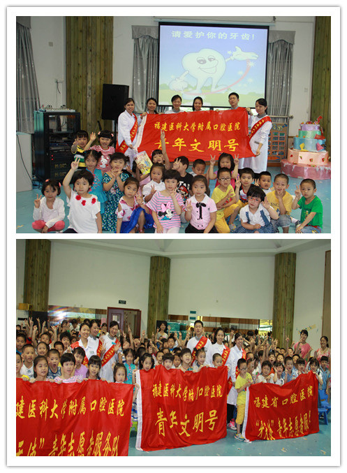 “手拿花花杯,喝口清清水,抬起头,闭着嘴,咕噜咕噜吐出水。。。。”福州市鳌峰幼儿园多功能厅里传来悦耳的漱口歌。5月28日下午,福建医科大学附属口腔医院交通路门诊部的医护人员走进福州市鳌峰幼儿园,开展“呵护儿童口腔健康 分享‘六一’快乐”的爱心义诊活动。他们不仅面对面教会孩子如何科学刷牙、预防龋齿,还一对一给他们检查口腔健康,为家长填写检查反馈单……一起和孩子们在知识的海洋中提前度过了一个愉快的“六一”儿童节。(交通路门诊部 黄荷端)