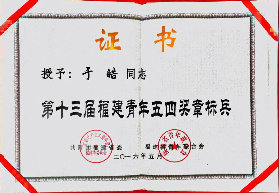 2016年5月3日,福建省纪念五四运动97周年暨“聚焦创新创业,助力脱贫攻坚”青年典型分享会会在福建会堂召开。我院于皓博士获得第十三届“福建青年五四奖章标兵”荣誉称号,是我校首次获此殊荣的80后青年医务工作者。 福建省五四青年奖章的评选是为了集中展示广大青年在推动福建科学发展跨越发展中的积极作为,进一步在广大青年中形成崇尚先进、学习先进、争当先进的氛围。本年度全省共评选出100名“福建青年五四奖章”获得者,其中包括12名“福建青年五四奖章标兵”获得者。 广大青年医师都要以“青年五四奖章”获得者为榜样,勤于学习、善于创造、甘于奉献,深刻认识肩负的时代责任和光荣使命,将为患者提供优质的医疗服务作为青春远航的动力,努力做好临床工作和科研工作,为推动医院新一轮发展贡献青春力量。(修复科 于皓 童新文 供稿)
