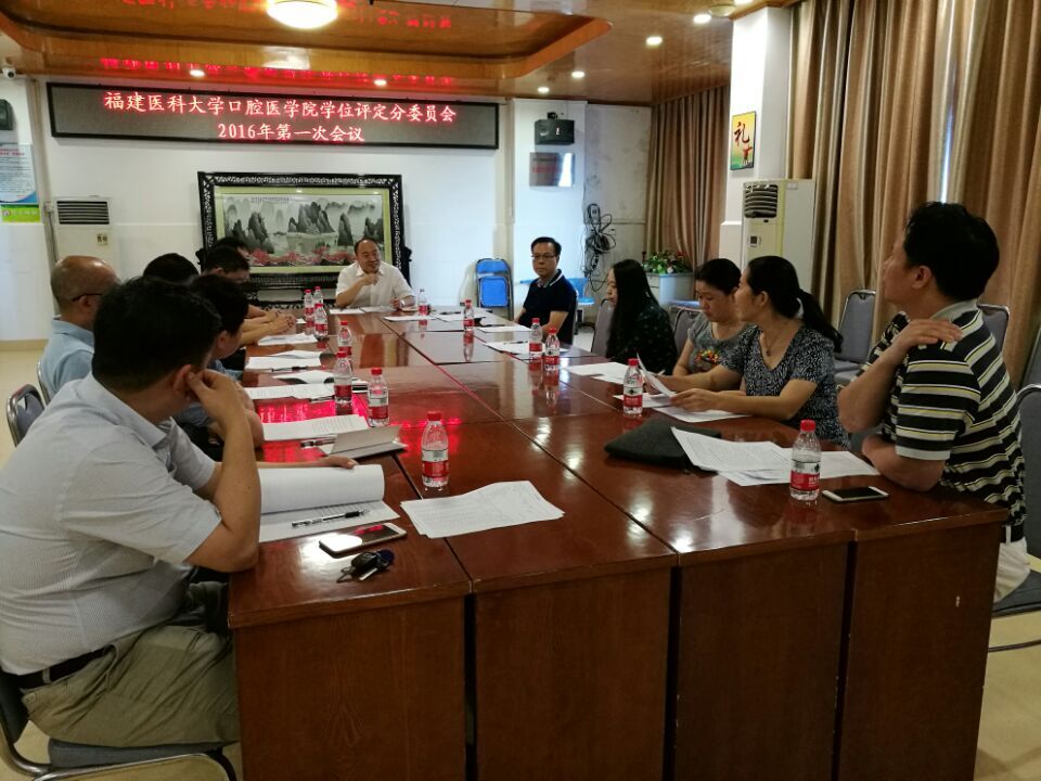 2016年6月7日下午,我院在医院7楼会议室召开福建医科大学口腔医学院学位评定分委员2016年第一次会议。会议由学位分委会副主任委员程辉教授主持。 首先,学位分委会秘书张长源老师分别就2016年申请学位人员情况、2017年研究生导师招生资格审核情况做了详实的汇报,由会议做出集体决议。然后,会议就我院研究生学位论文集中答辩实施情况进行了讨论,总结了优势与不足。 最后,学位分委会主任委员陈江教授发表讲话。他首先感谢了各位委员、各位导师对研究生工作的支持与配合,他指出研究生工作涉及面广,敏感性强,集中答辩既可以加强我们与其他院校的交流,又会给自身带来新的挑战,我们本着对学生负责、对专业负责、对学院负责的态度,应当扬长避短,转变观念,加强学习,提高水平,将学位论文集中答辩工作做好,不断提高研究生教学整体水平。(科教科 王善之 供稿)