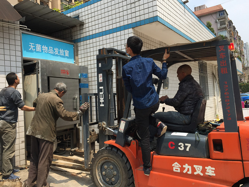 从3月底开始,总务科、院感科等职能部门与施工方、各设备工程师对现场进行多次确认,保证脉动真空压力蒸汽灭菌器等大型设备的安装条件。林莺护士长拟定了切实可行的搬迁方案,并详细地制定了搬迁期间工作人员安排表。3月31日晚,消毒供应中心全体人员团结协作,迎风沐雨,在各临床科室的积极配合下完成了所有无菌物品的下送工作,为迎接搬迁做好充分准备。