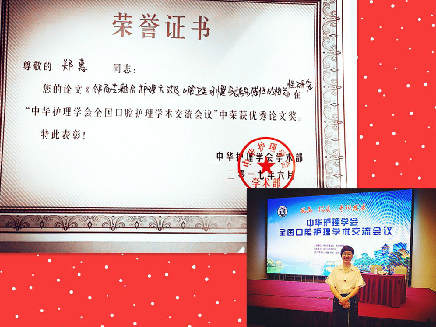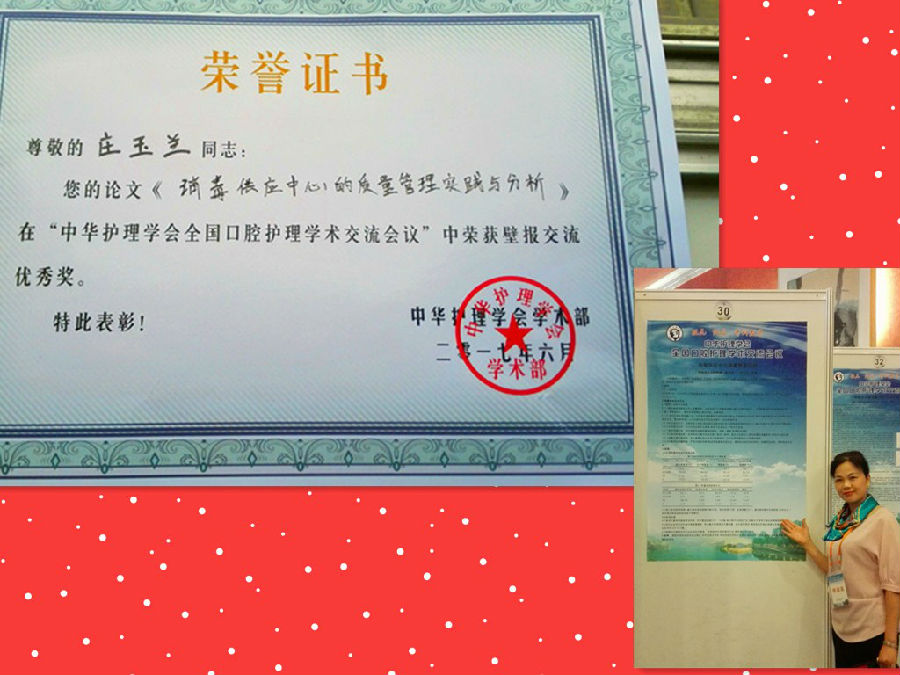 本次大会共收到论文1318篇,可喜的是,我院郑惠的《邻面去釉后护理方法及口腔卫生习惯与龋易感性的相关性研究》和庄玉兰的《消毒供应中心质量管理实践与分析》在众多论文中脱颖而出,分别了进行大会交流和壁报交流,并获得优秀奖。(护理部庄玉兰供稿)