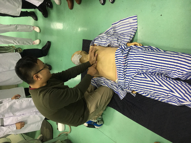 此次培训过程中,林伟医生先通过PPT介绍了突发情况下如何进行CPR,并且通过仿真模型示范了CPR流程,然后我院急诊科医护人员依次亲身体会如何判断病人意识、脉搏、呼吸,如何把握黄金1分钟快速开始心脏按压,医护间配合抢救患者……在林伟医生的指导下,急诊科医护人员不断提升心肺复苏的抢救速度、提高CPR质量,为心脏骤停患者争取宝贵的救援时间。