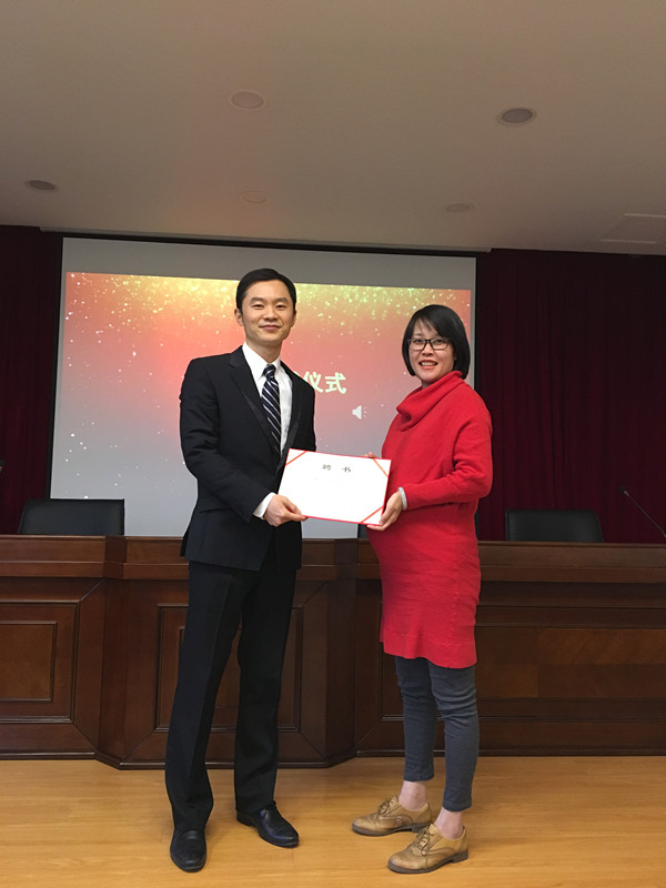 会上,由第一届团委书记张玉英宣读校团委“关于共青团福建医科大学附属口腔医院第二届团员委员聘任的批复”,宣布陈帅、蔡森鑫为第二届院团委书记和副书记,并为二人颁发聘任证书。随后由新任团委书记陈帅为新任团委委员及各部门成员、各支部书记颁发聘任证书。这是院团委首次举行聘书颁发仪式,红色的聘任证书使在场的每一个人感到自豪,萌生了强烈的主人翁意识。