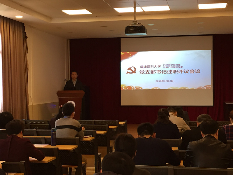 2018年3月12日下午,我院在八楼大会议室召开2017年度全院党支部书记抓党建工作述职评议考核会议,全体院领导、各党支部委员参加了此次会议。会议由口腔医学院党委书记、附属口腔医院副院长卢友光教授主持,全院15个党支部书记分别做了2017年抓党建工作述职,现场参会人员对各党支部及支部书记进行了民主测评。