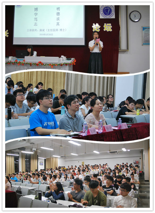 2018年5月30日晚,福建医科大学口腔医学院第十三期“1+1成长”论坛在福建医科大学上街校区第16教室举办,学院综合办公室主任庄端、辅导员黄鸿峰、2016级和2017级全体同学参加。