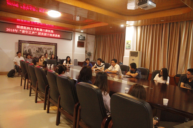 为深入学习共青团第十八次全国代表大会精神和习近平总书记关于青年和共青团工作的重要讲话精神,贯彻落实《福建医科大学附属口腔医院关于开展纪律教育活动月的实施方案》,2018年8月31日下午,我院召开2018年“青年之声”团员团干培训讲座,会议邀请了福建省直机关团工委陈国钦书记作为主讲嘉宾,为我院共青团员团干进行了一次培训讲座。