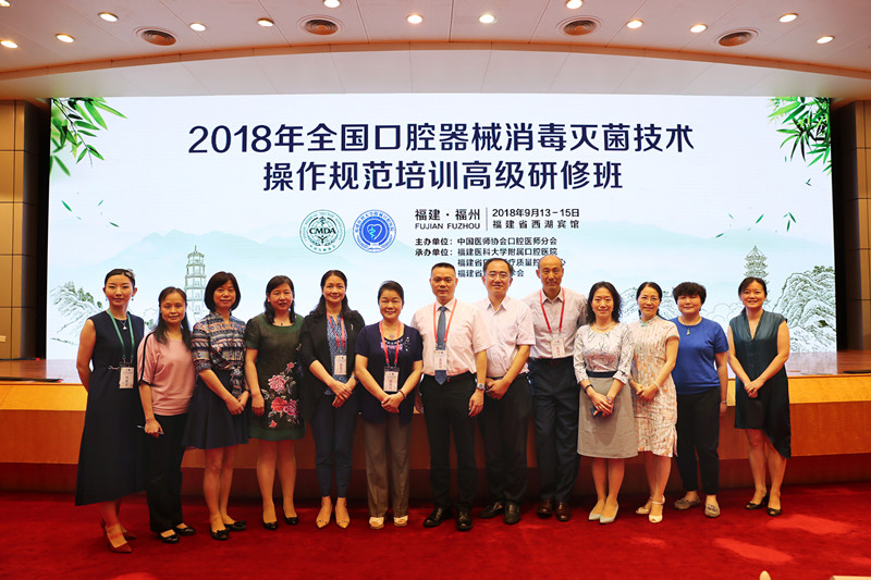 由中国医师协会口腔医师分会主办,福建医科大学附属口腔医院、福建省口腔医疗质量控制中心、福建省口腔医学会承办的国家级Ⅰ类继续教育项目“全国口腔器械消毒灭菌技术操作规范培训高级研修班”于2018年9月13-15日在福建会堂隆重召开。来自全国各地的医院管理者、医务科科长、院感科主任、护理部主任、医护人员等共计430余人参加了会议。国家卫健委医政医管局医疗质量处杜冰主任、中国医师协会口腔医师分会郭莲副会长、福建省卫生计生委医政处张国安处长、福建医科大学附属口腔医院党委书记、院长陈江教授等领导应邀出席开幕式并致辞。