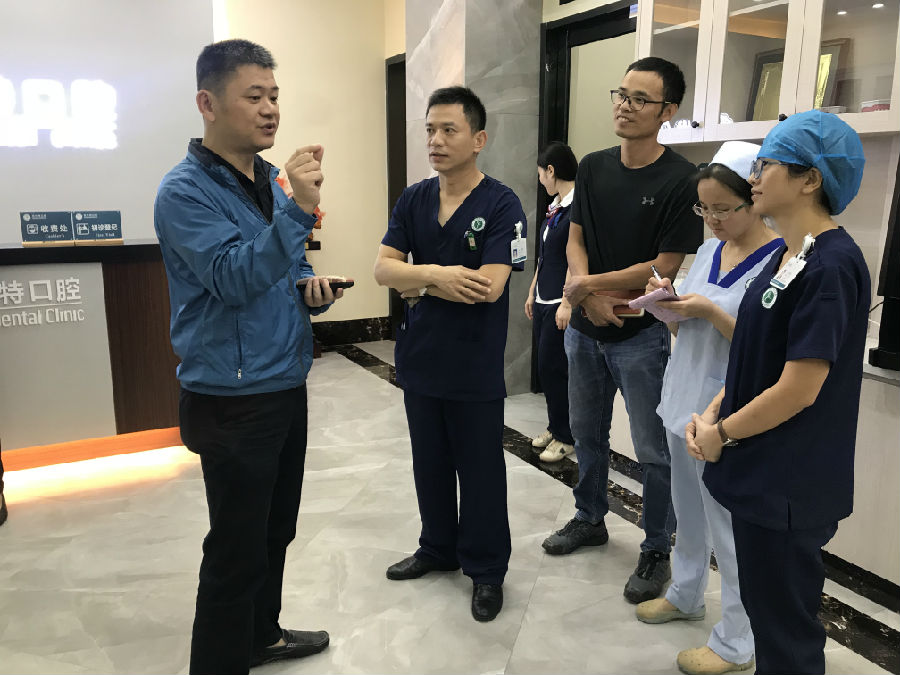 本次检查分为9个检查组,每组安排3-4名专家及1名联络员,分别赴全省九个地市进行口腔医疗质控检查。专家们依据《2018年福建省口腔医疗质量控制中心质控检查评价标准(试行)》,通过现场访谈,实地查看,查阅资料等方式对各受检医疗机构的人员设置、门诊布局和设备设施、院感管理与职业防护、口腔种植诊疗技术、病历书写、口腔修复工艺制作项目、门诊急救、抢救设备设施等情况进行细致地检查,及时发现了一些存在问题和潜在风险隐患,对于发现的问题专家们均当场予以沟通和指出,指导受检医疗机构如何加以改进提升,深受受检医疗机构的广泛好评。