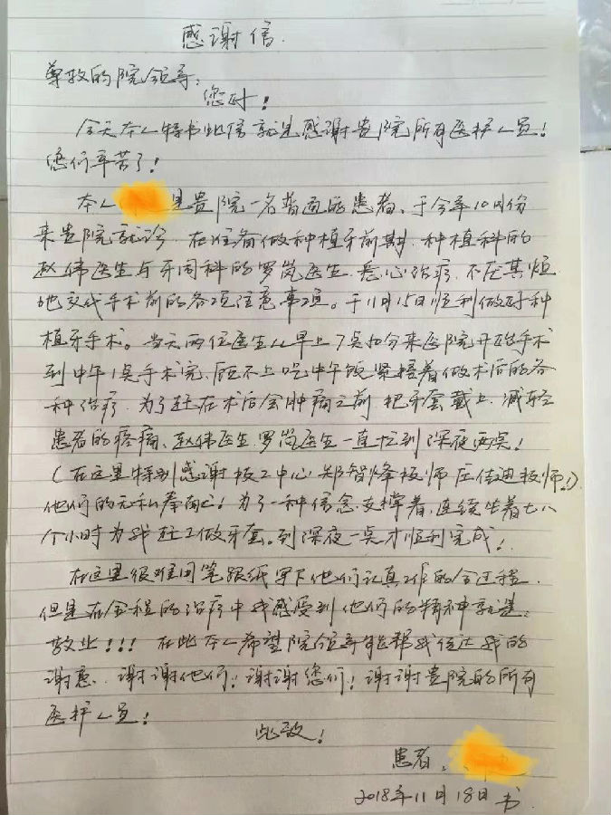 一封信饱含对我院医护人员尽职尽责的感激与敬佩之情,也反应出了我院医护人员一切以病人为中心的服务精神。