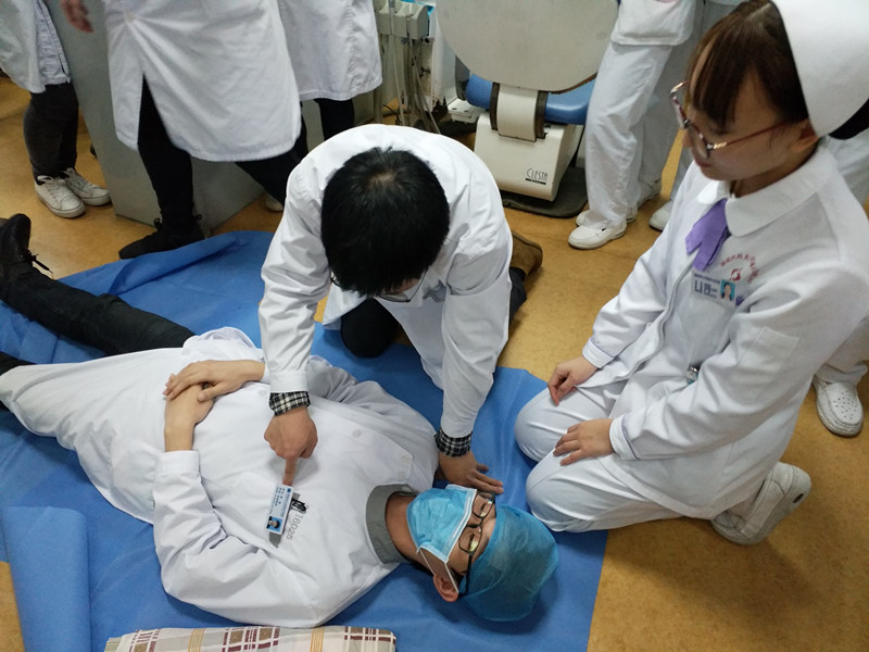 为增强医学生专业技能,提高医务人员急救技术水平和处理突发事件的应急反应能力, 2019年1月15日交通路门诊部利用午休时间组织科内四生及轮转护士进行了“药物致过敏性休克抢救”应急演练考核,整个演练过程紧张而有序,心肺复苏和氧气瓶吸氧术做到全员练习考核过关。演练结束后,参加人员共同探讨了演练流程中的关键环节和注意事项,护士长和带教老师对本次演练进行了总结点评,指出了急救过程中的不足之处并加以纠正、规范化,强调今后应加强业务学习,不断总结经验,加强抢救病人的实践能力。