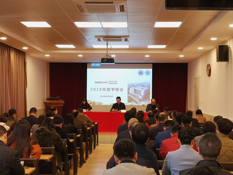 2019年1月28日下午,我院在八楼大会议室召开2018年度考核会,全体院领导、院中层干部参加了此次会议。学校党委副书记王诗忠同志、组织部副部长林玉芝同志作为考核组成员莅临指导。 会议由校党委副书记王诗忠同志主持,陈江院长代表院领导班子做了2018年医院工作总结报告,现场参会人员对医院领导班子及班子成员进行了民主测评。(党办 蔡森鑫供稿)