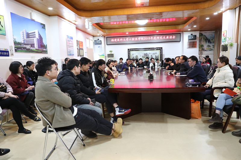 2019年2月22日上午,福建医科大学口腔医学院2019年度研究生座谈会在医院七楼会议室举行。副院长程辉教授、辅导员张敏老师、教学办工作人员及2016级全体研究生参加了座谈会。