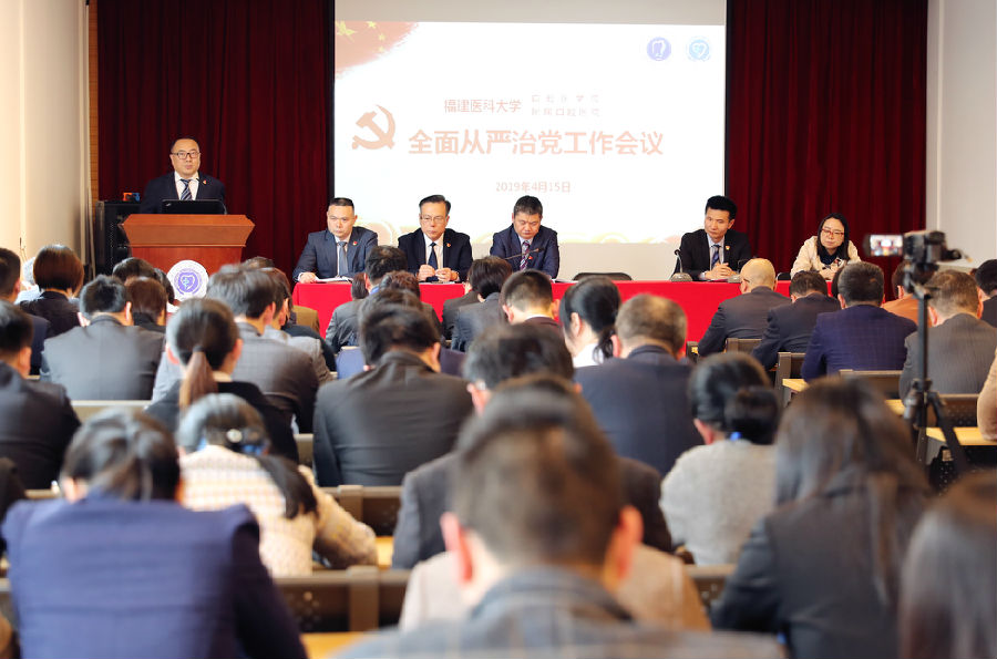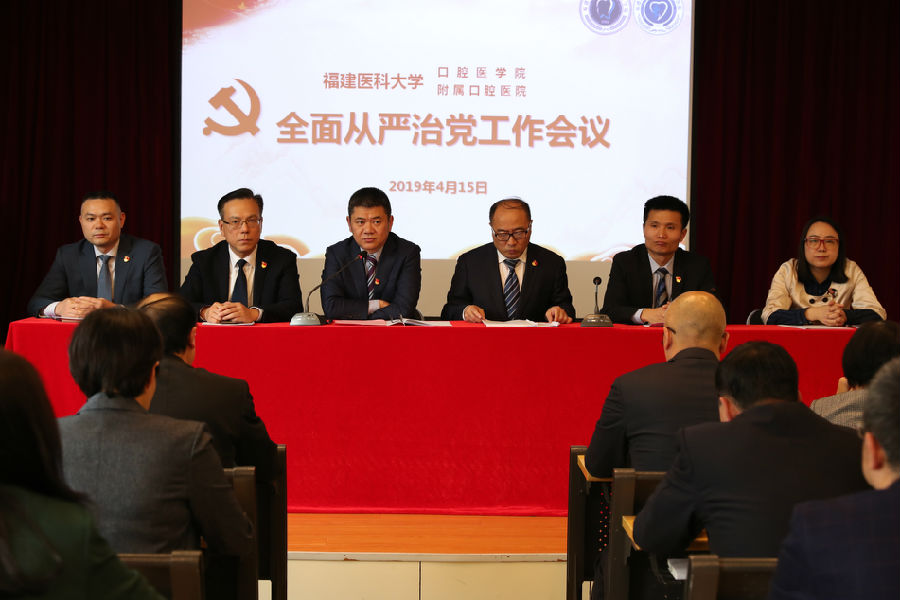 2019年4月15日下午,我院在门诊八楼大会议室召开全院2019年全面从严治党工作会议。会议由口腔医学院党委书记、附属口腔医院副院长卢友光主持,院党委副书记、纪委书记黄朝新同志作了工作报告,附属口腔医院党委书记、院长、口腔医学院院长陈江同志作部署讲话,全体院领导、全院中层干部、党支部委员及研究生导师参加了此次会议。