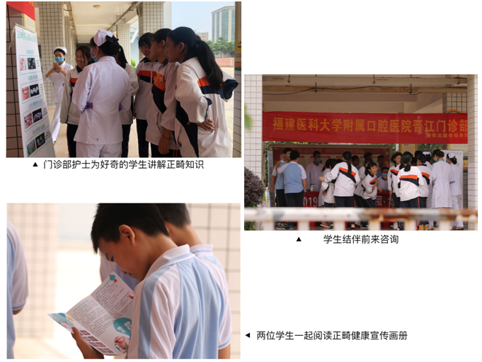 2019年5月15日是第3个“世界正畸健康日”,今年的健康日主题是“健康微笑,受益一生”。福建医科大学附属口腔医院晋江门诊部医护人员积极响应世界正畸联盟和中华口腔医学会正畸专业委员会的号召,在福建医科大学附属口腔医院的组织下,到晋江市江滨中学组织了一场大型校园义诊活动,主动为学生们普及口腔正畸知识,开展口腔义诊并赠送纪念礼包活动。