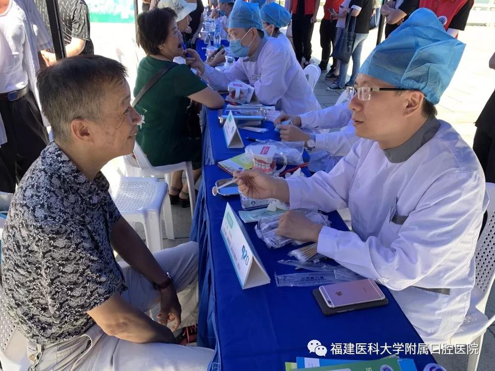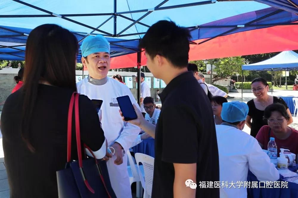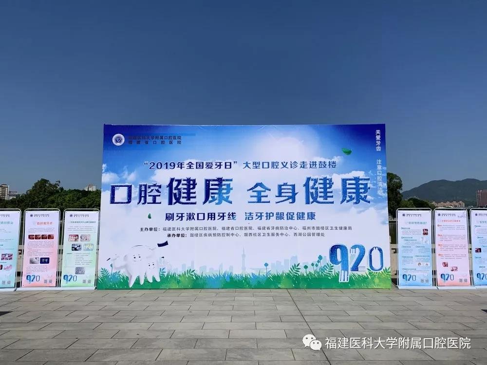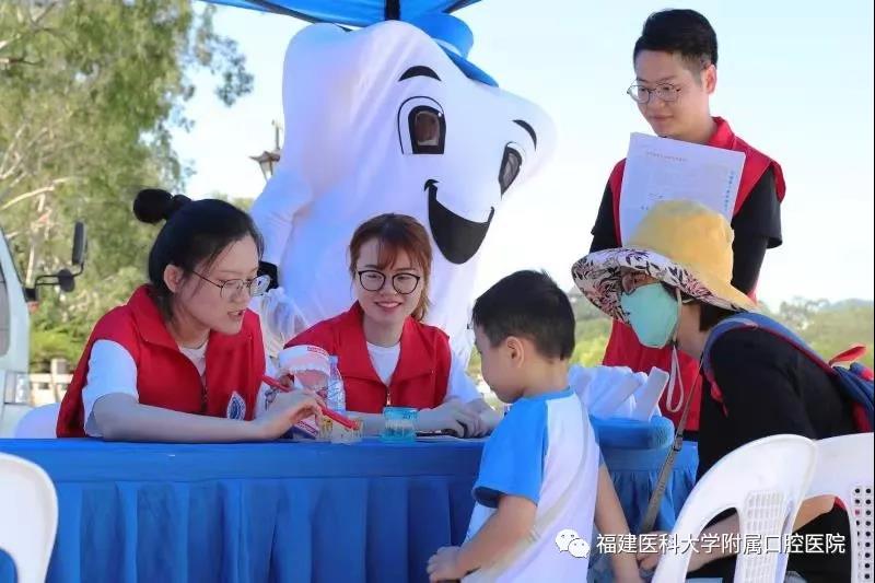 2019年9月20日上午,福建医科大学附属口腔医院联合福州市鼓楼区卫生健康局在福州市西湖公园开展以“口腔健康 全身健康”为主题的2019年“9.20全国爱牙日”大型义诊活动,来自口腔医院各专业的30余名资深专家及志愿者到现场参加义诊活动。