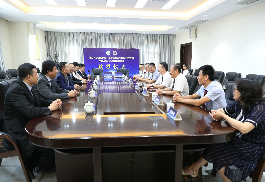签约仪式上,北京大学口腔医院院长郭传瑸教授和我院院长卢友光教授分别代表双方签约。