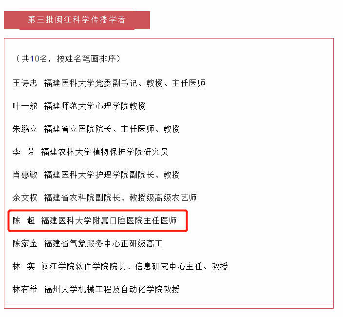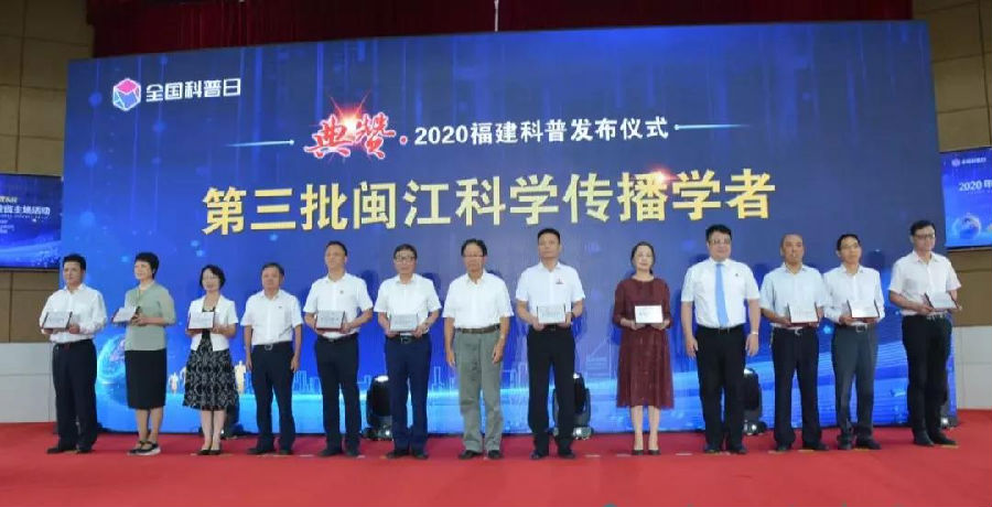 启动仪式上发布了2020年度福建省十佳科学传播人物、福建省科普工作优秀学会、第三批闽江科学传播学者名单,并为获奖个人及组织颁发证书及聘书。我院陈超主任获聘第三批闽江科学传播学者。