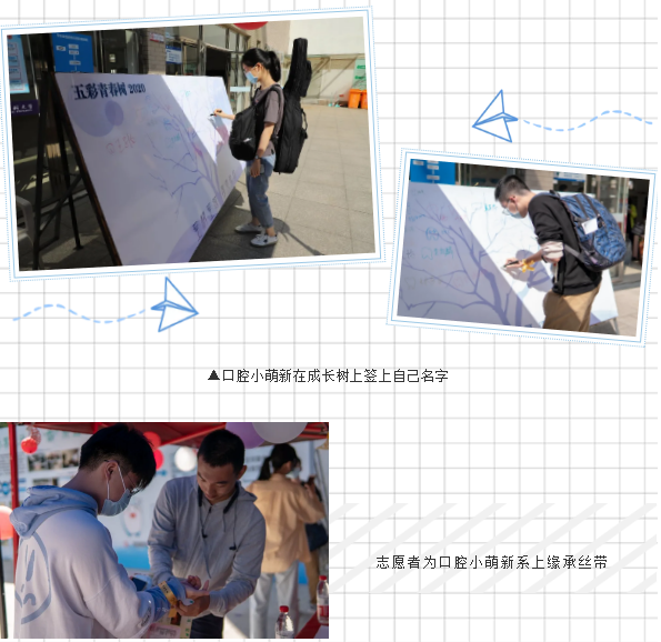 为使2020级新生能够精彩地开启大学生活,学院精心策划了寄语传递、萌牙涂萌芽、缘承丝带、防疫小指南和学院大攻略等创意活动。其中寄语传递由2019级学长学姐亲笔写下开学寄语明信片作为2020级新生的第一份礼物,同时明信片也承载着2020级新生的期望和梦想,一年后我院会将每一位新生的明信片发回,以此鼓励每一位新生在未来的一年里不忘初心,砥砺前行;萌牙涂萌芽:为新生准备了“五彩青春树”的枝干,枝干上的萌芽由新生选取自己喜欢的颜色以萌牙式样涂抹填满,祝福新生在学院的扎实根基上可以肆意描绘自己的未来;缘承丝带:为新生系上印有院徽和院训的丝带,紧密相连,增强新生的归属感,将学院院训和精神品质代代相承;防疫小指南:让疫情防控工作融入迎新的每一个细节,让新生能更快适应疫情常态化下的大学生活;学院大攻略:通过我院团委微信公众号、官方微博、官方QQ、易班等新媒体工具,就专业介绍、团委学生会各部门介绍、谨防不良校园贷款、生活小贴士、宿舍关系、校园美食等进行官方大攻略推送,向新生分享经验,让新生尽快适应大学生活和学习的节奏并乐在其中。(供稿:学工办林中青、郑婉真、陈璐瑶供图:黄兴源,何清飞,檀遵豪,郑家浓)