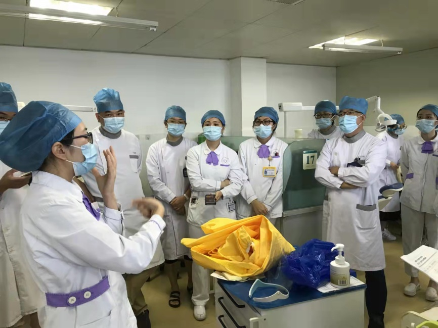 正畸科全体医护人员参加了此次演练,演练结束后,参加人员再次针对本次演练进行反思和总结,以求突发情况发生时能以最快、最有效的方法应对和解决,进一步增强了科室成员对新冠肺炎的认识,树立牢固无菌观念,加强抗击肺炎的信心,为人民群众口腔健康保驾护航。(正畸科 黄静)