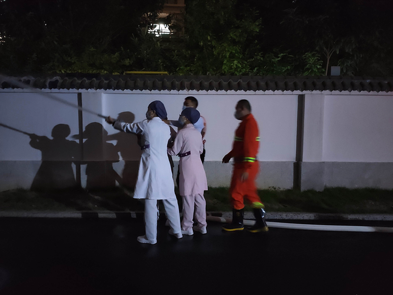 演练结束后,保卫处许华敏处长做了简单总结。他首先对参与此次演练的所有人员给予了充分的肯定,并强调消防安全无小事,遇事要沉着冷静,医院属于人员密集场所,消防安全是重中之重,一定要把患者和全体职工的安全放在首位,把防火灭火的责任牢记心中。之后,许处长还布置了现场小型模拟火点,进行灭火器及水枪实战演练,吸引了众多医护人员踊跃参与互动体验。