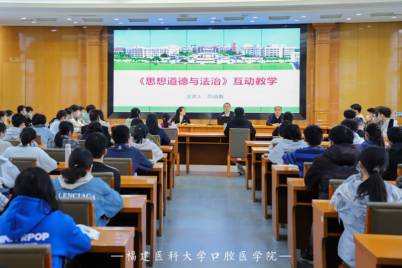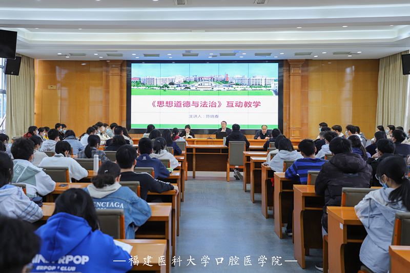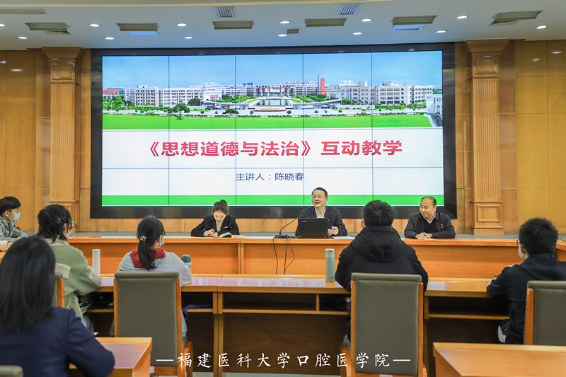 2021年12月13日上午,校党委书记陈晓春在旗山校区行政楼B座学术报告厅,以“医学生职业认知与素养”为主题,面向口腔医学院2021级本科新生讲授《思想道德与法治》思政课。党委宣传部部长杨新勇、学生工作处处长张敏坚、团委书记魏玲、附属口腔医院暨口腔医学院党委书记陈江、副院长张志兴、全体辅导员一同参加了此次学习。
