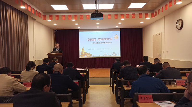 报告会以《承前启后,奔赴新赶考之路》为题展开宣讲。围绕深刻认识通过《决议》的重要意义,深刻认识把握《决议》的特色亮点和重大政治判断、落实全会精神的实践要求等方面,全面阐释了党的十九届六中全会的精神实质和丰富内涵。