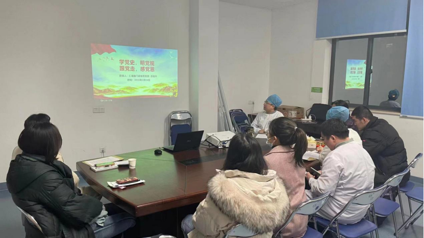 2022年2月24日傍晚,仁德路门诊部党支部召开党员大会,支部书记苏柏华同志为支部全体党员讲党课。