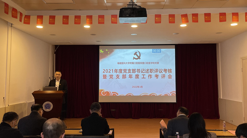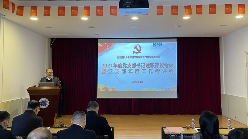 2022年3月9日下午,我院2021年度党支部书记述职评议考核暨党支部年度工作考评会在门诊八楼会议室顺利召开。院党委班子成员、各党支部书记、党员和群众代表参加了会议。本次党支部书记述职会议上,全院20个党支部会前提交了一年来工作情况的书面报告,并形成了汇编材料。选派了牙周、种植、修复、特诊、外科、儿牙、学院教工、行政第一和本科生第二党支部等9位党支部书记现场汇报,从支部情况、履职成绩、主要问题和努力方向等方面回顾了2021年支部建设的工作内容,总结了支部党建工作的成绩和不足,并对2022年党建工作进行了展望。
