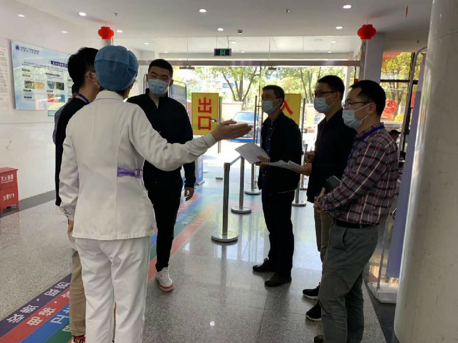 3月15日,院党委书记陈江,党委副书记、院长卢友光,副院长骆凯带领院疫情防控监督检查组对院本部和仁德路门诊部的疫情防控工作开展监督检查。检查组重点对疫情防控的工作流程、疫情应急处置、后勤保障、防控物资管理、预检分诊、物表消毒情况以及医务人员防护措施落实等情况进行了检查。检查中,陈江书记、骆凯副院长就院本部、仁德路门诊部的疫情防控工作的重点部位、关键流程、易忽视环节提出了建设性意见建议和指导。同时,对检查中发现的个别患者未佩戴口罩、疫情防控温馨提示信息未及时更新等问题要求立即整改,确保有效落实疫情防控各项措施。