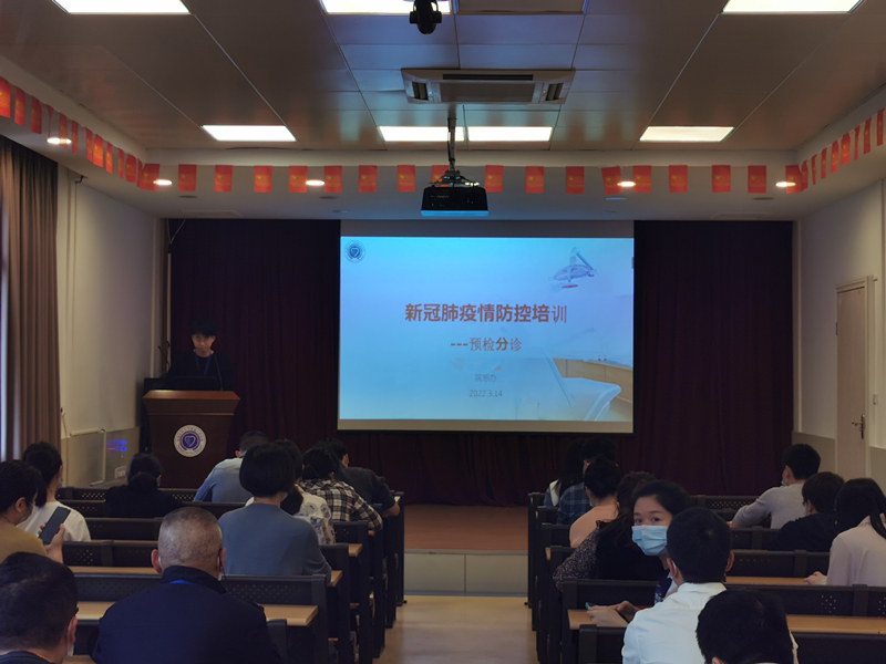 鉴于当前疫情防控形势日趋严峻,我院严格对照最新版《学校应对新型冠状病毒肺炎疫情工作方案》要求,坚持科学精准有效、从严从紧从实抓好医院常态化疫情防控工作。 2022年3月14日下午,医院组织召开新冠肺炎疫情防控相关业务知识培训会,我院全体预检分诊工作人员参加了此次培训。