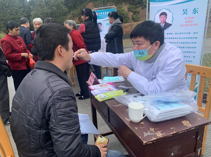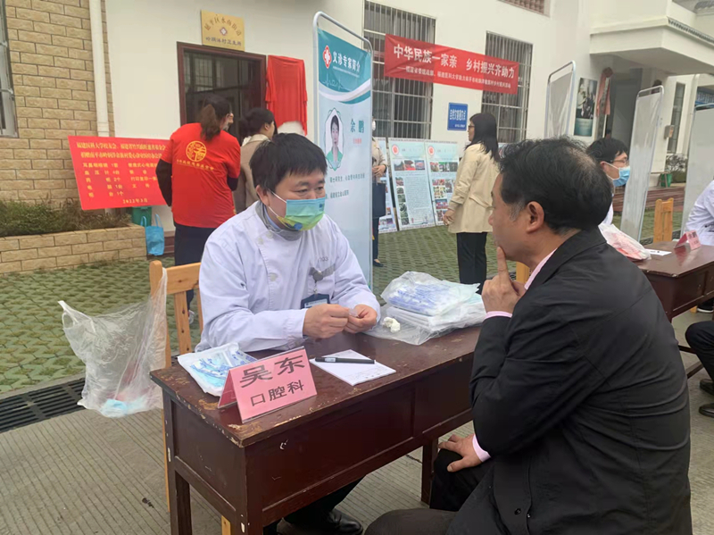 2022年3月5日,我院口腔颅颌面种植研究中心主任、种植一科副主任吴东作为无党派人士参加由福建省委统战部、福建医科大学携手福建省竹兴政旺慈善基金会举办的“中华民族一家亲,乡村振兴齐助力”主题活动,为南平市延平区水南街道岭炳洋畲族村居民开展了义诊。