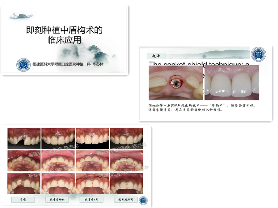 陈苏林医生的分享题目是《即刻种植中盾构术的临床应用》,从盾构术的生理基础和起源、适应证把握和临床技术要点、与传统即刻种植相比的优势以及需警惕的并发症等方面进行了文献解读和相关病例汇报。